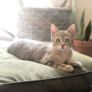 Bunny's favorite spot is napping under the laptop stand where he keeps Kristen company. He also encourages a work-play environment.